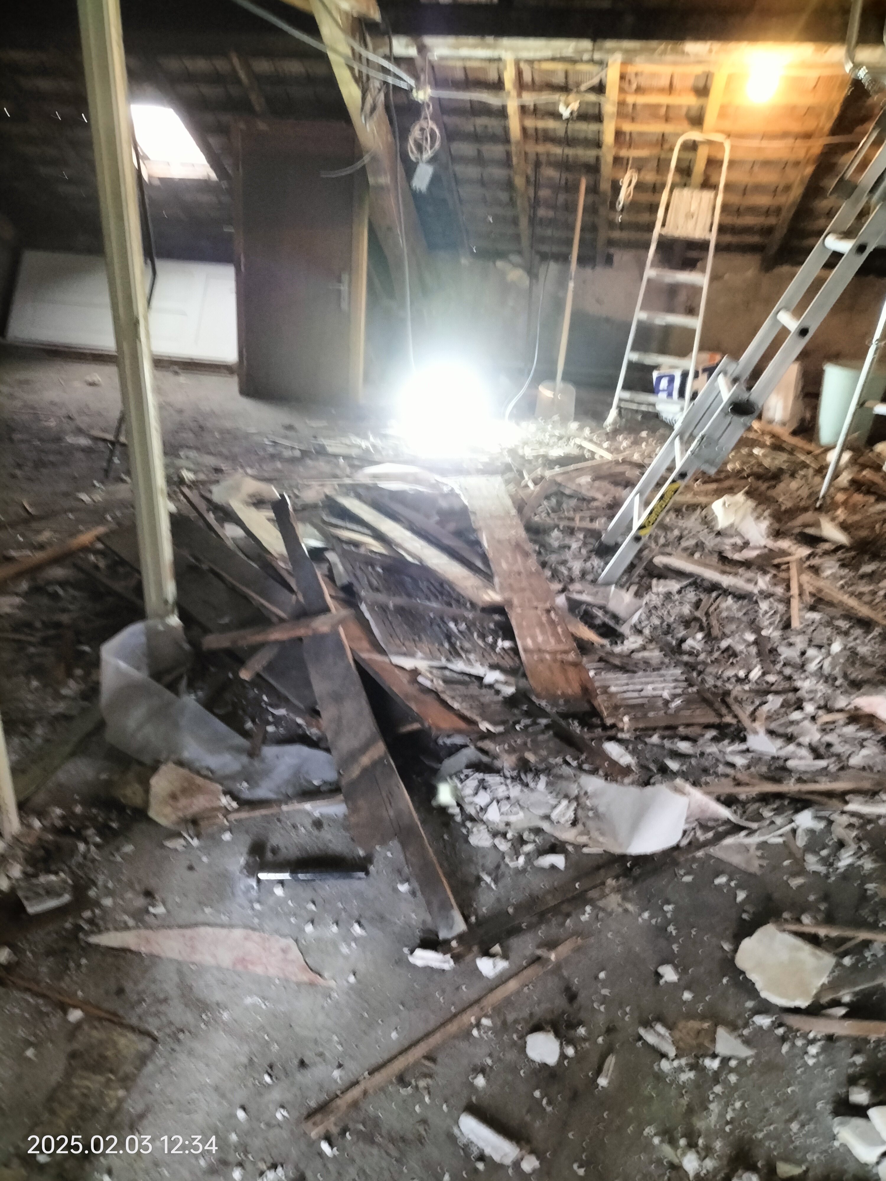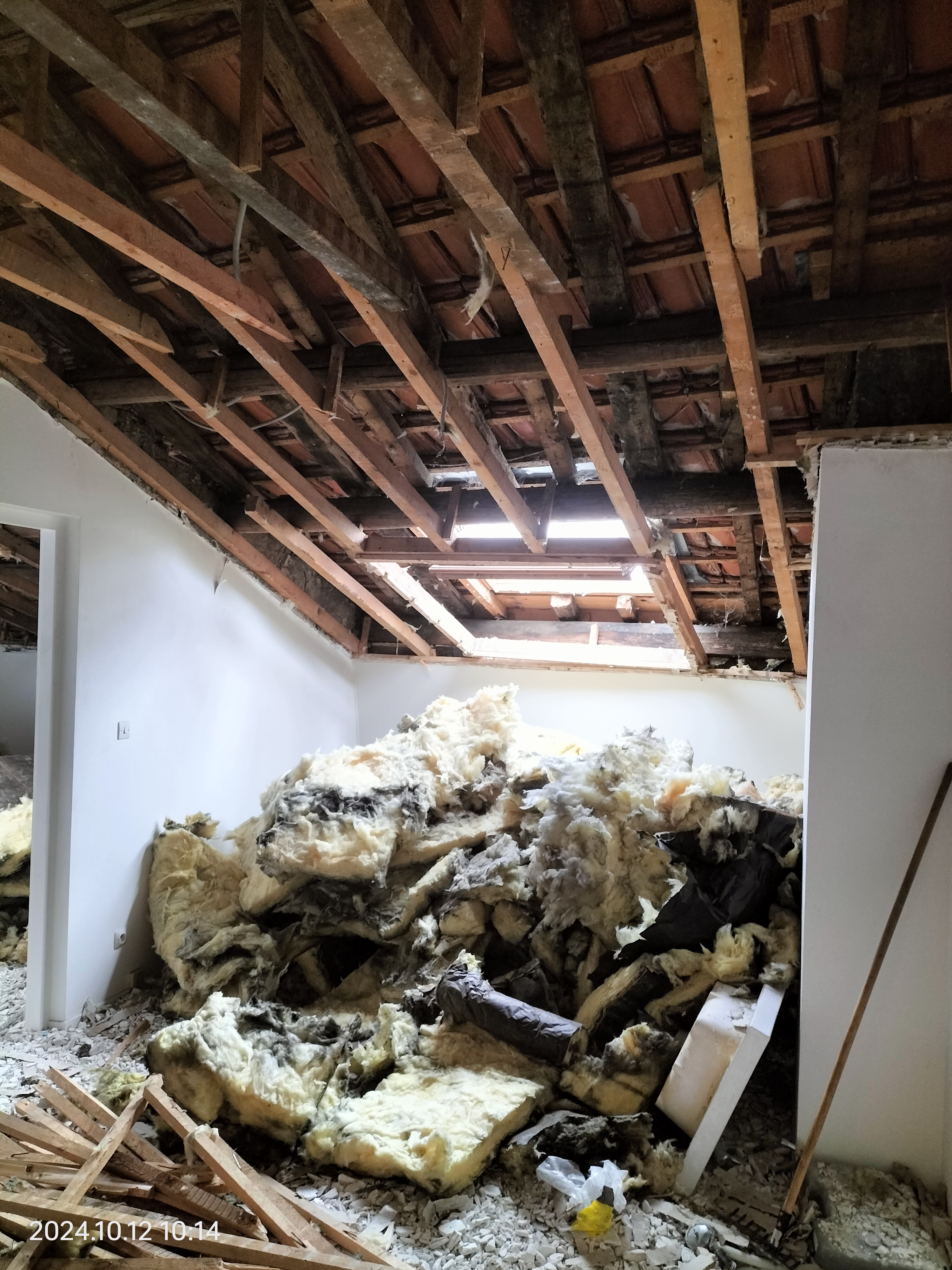Démolition de mur et dépose d'un plafond et isolation.